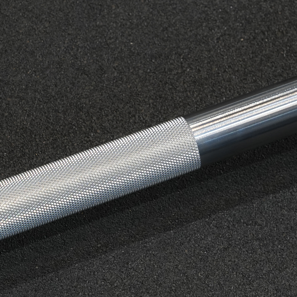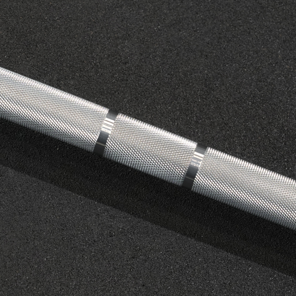 Sześć sekcji radełkowania zapewnia bezpieczny i pewny chwyt przy każdym ćwiczeniu, a brak centralnego knurlingu sprawia, że sztanga jest wygodna w dynamicznych ruchach, takich jak rwania czy podrzuty.
